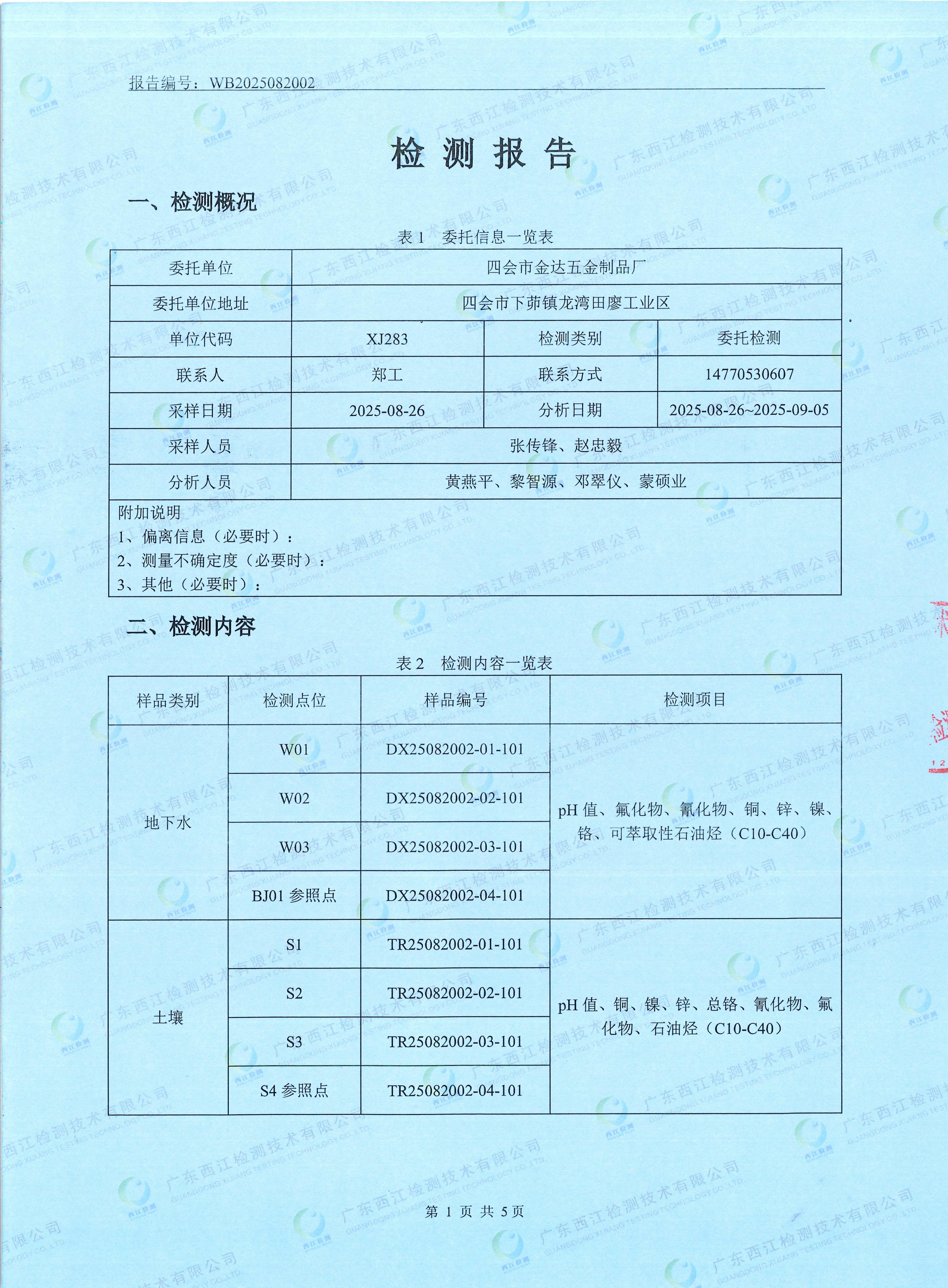 2025四會市金達五金制品廠地下水、土壤檢測報告
